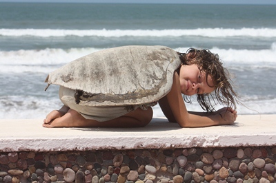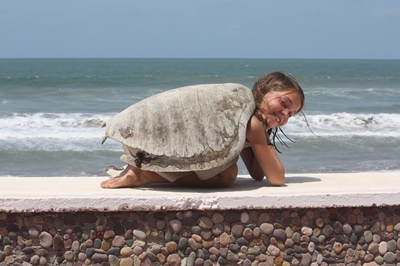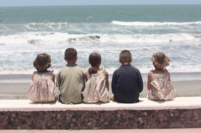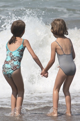 There are good waves but that does not scare the children who jump into the water and play for hours.