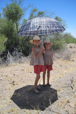 At lunch time everyone try to protect himself from the sun !