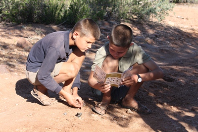 Children play in identifying animals and their tracks using a small booklet purchased at the Visitor Center.