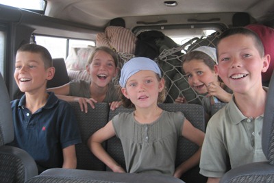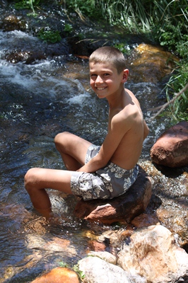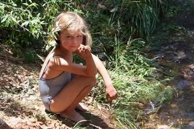 We have picnic beside a small stream, and the children are happy to put their feet in cool water.
