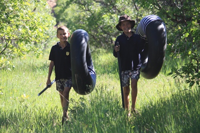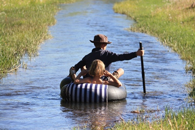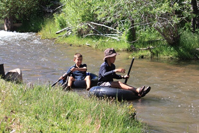 While Charlotte strenna her new bathing suit, boys go to explore the river.