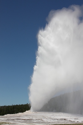 Suddenly, as every 90 minutes, the geyser spits a huge spray of water and steam.