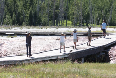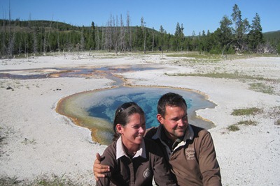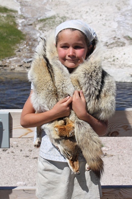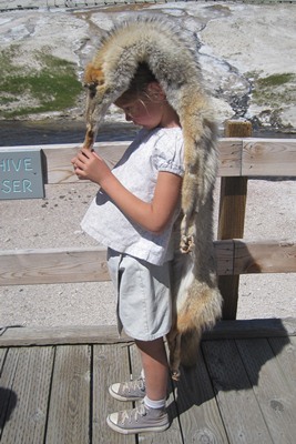 We do a tour together with a Ranger, but girls are more interested in the skin of coyote he carries in his bag than by his explanation about the geysers.