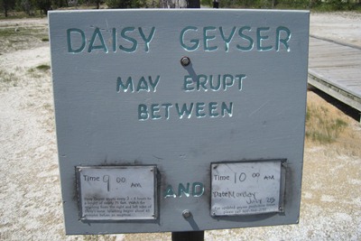 In the fields of geysers, signs indicate the expected time of the next eruption.