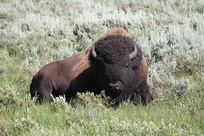 We see a very big elk and a bison so beautiful it seems fake.