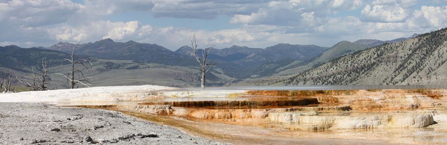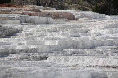 We discover the water terraces of "Mammoth Hot Springs."