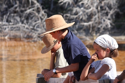 Children admire the old timers...