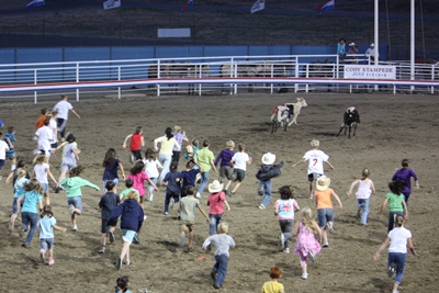 It is then the turn of children to run after the calves.