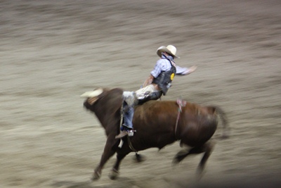 First, the rodeo on horses. The strap which tightens the lower abdomen of the animal turns within a few seconds a quiet mount into a spirited mustang.
