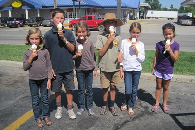 As children are busy in the car and do not want to come out, his wife, Dina, goes and get ice creams.