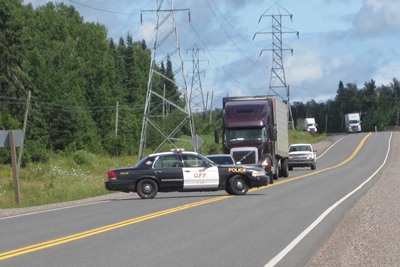 Then the traffic is stopped by the police for the tow truck to be put in place.