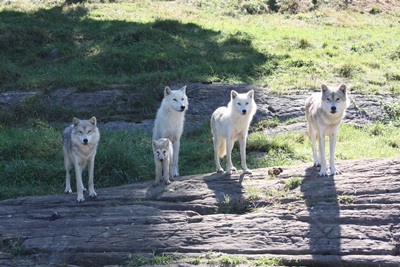 A beautiful white wolf pack occupies a hill, separated from the other tenants.