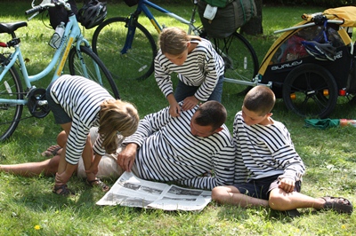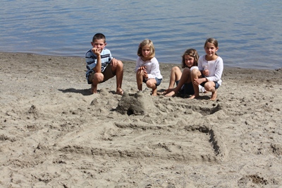 In the meantime, the children make sand castles on the beach.