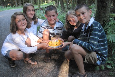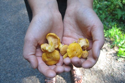We find our first chanterelles (wild mushrooms).