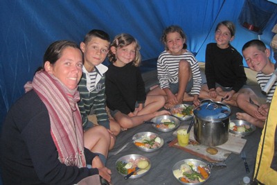 At night, we camp along the track.