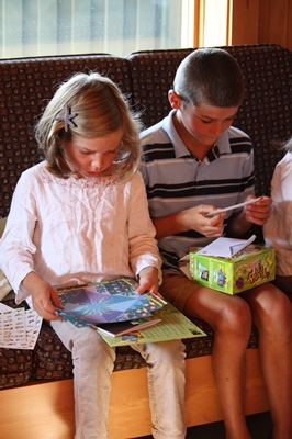 Thank you aunt Anna for the stickers, aunt Marjo for the for the paper folding game and Aunt Charlotte for the "Times up" !