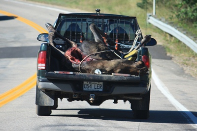 The animal was hunted with a crossbow the night before and will provide meat for the winter to this family.