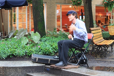 A juggler plays traditional Quebec music, funny mix of Marine song and Irish music!