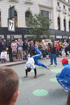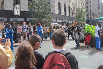 In the street, a group of young blacks make a demonstration of Hip Hop.