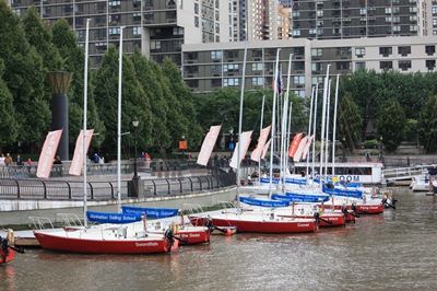 We are surprised to find a sailing school in the midst of office buildings.