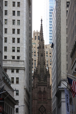 In the south of Manhattan, the business district is a strange mix of old and new buildings.