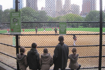 We watch kids playing baseball: it's hard to believe that we are at the heart of Manhattan.