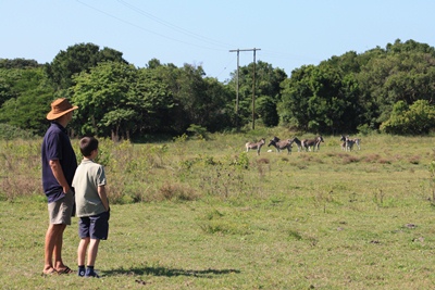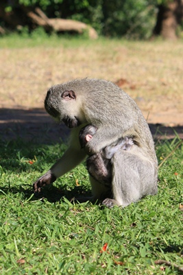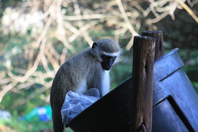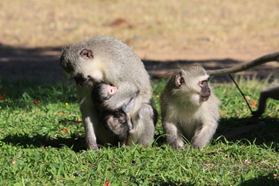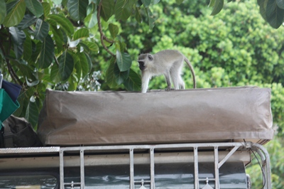 During breakfast, we receive a visit from some vervets, and children find it great.
