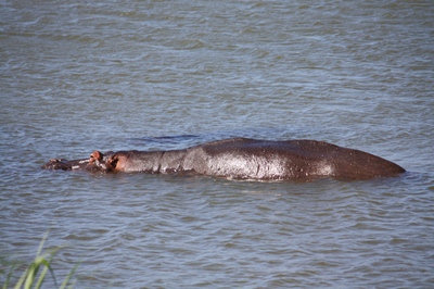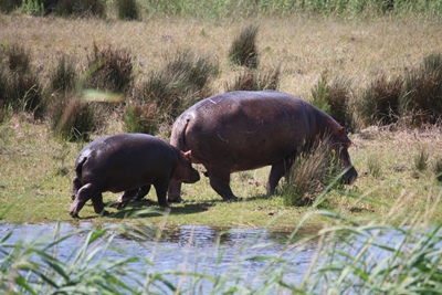 We have the incredible chance to see a family of hippos frolicking just meters from us.