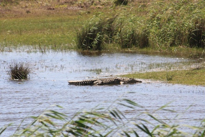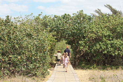 A boardwalk allows to explore wildlife in the estuary of Santa Lucia.