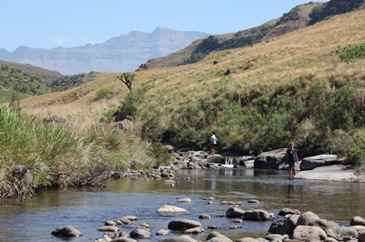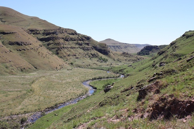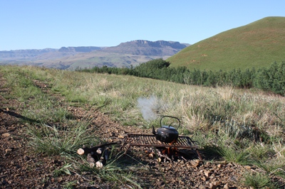 In the distance we see the huge rock barrier that marks the border with Lesotho.