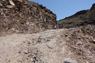 After a bend, we see the fault that will allow us to go through this amazing fortress.