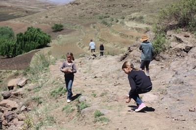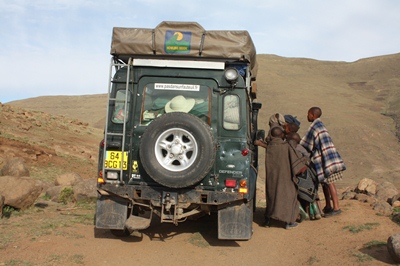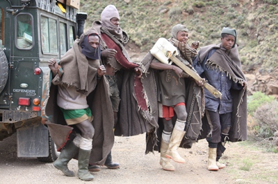 under the amuzed eyes of some Basotho coming out from we don't know where.