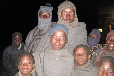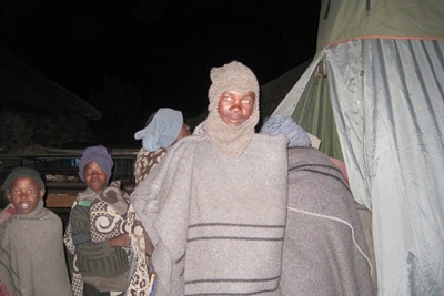In the morning, Mpho, the village chief, paces in front of the car to prevent children from coming to disturb us.