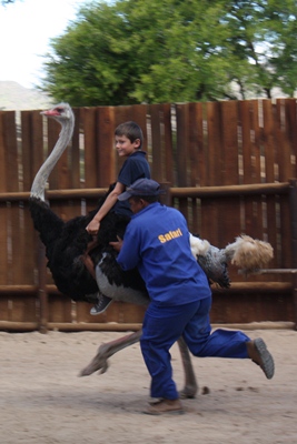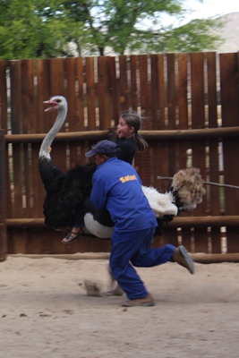 We visit an ostrich farm, taking the opportunity to get closer to these large birds.
