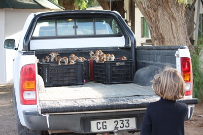 Leaving the farm, we come across these beautiful blue cranes, symbol of South Africa.