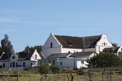 The small town of Swellendam, surrounded by mountains, shows a very pretty and typical architecture known as "Cape Dutch" .