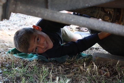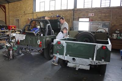 This homemade kart and this old Landy give new ideas to the boys.