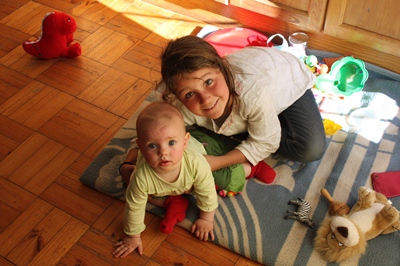 The girls are happy to look after Chloe, the daughter of the owners.