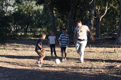 Duncan, our host, plays football with the boys.