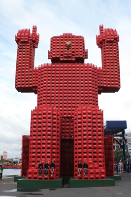 And this sculpture made of crates of Coca-Cola shares the place with a more traditional Christmas tree. All in a pleasant atmosphere.