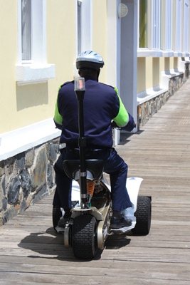 Street bands are everywhere, playing under the watchful eye of a policeman riding an electrical tricycle !