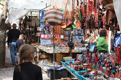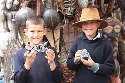 We pass by the big market, and the boys fall in love with these cox made of steel wire.