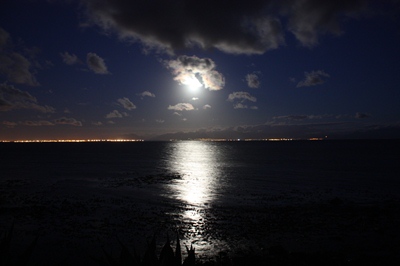 We spend the night in a small campsite, where we admire a magnificent moonrise over the bay.