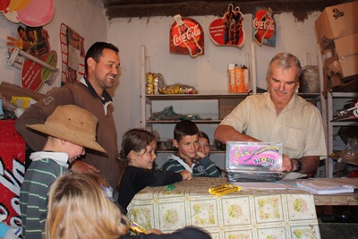 We end up in the grocery store of the farm, organized by Gert for his workers.