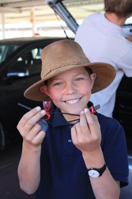 Our budding Boy Scout is delighted.