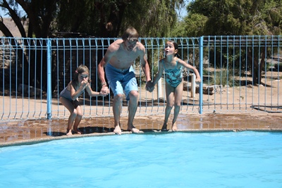 We end this beautiful day with a good jump into the pool of the park. Welcome after such a heat.