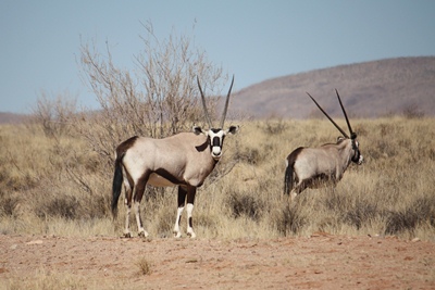Oryx, springbox, zebras, ostriches.