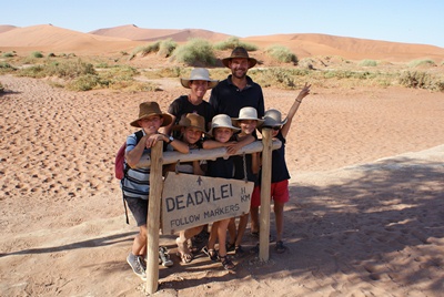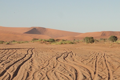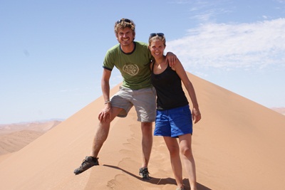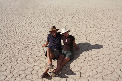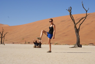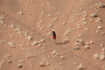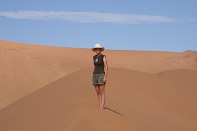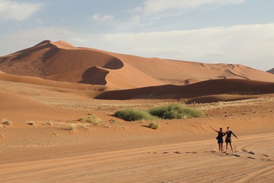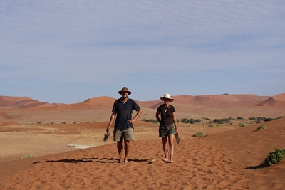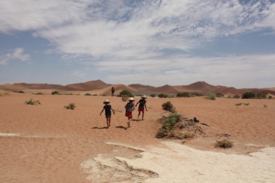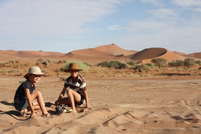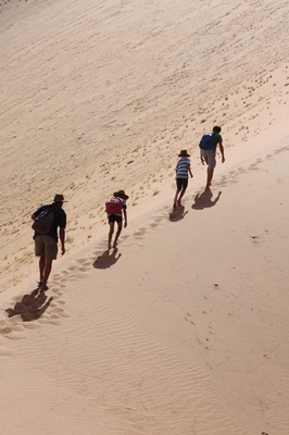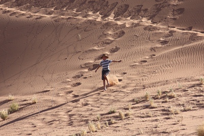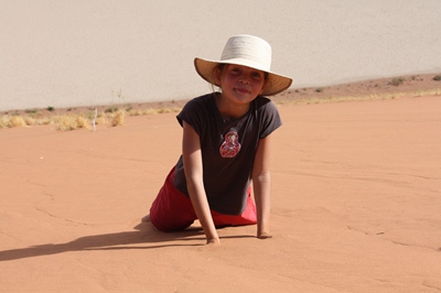 Charlotte and Boule take advantage of the stop to go for a walk in the warm sand and take some pictures.