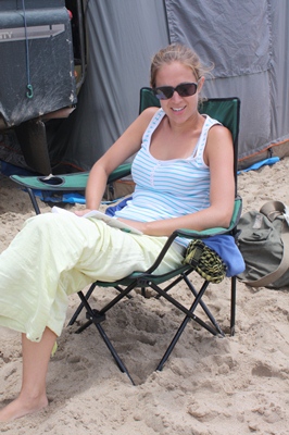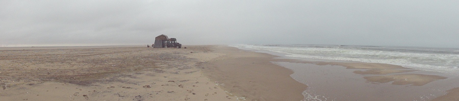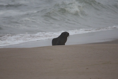 In the early morning a baby seal lands on the beach a few meters from our car.