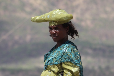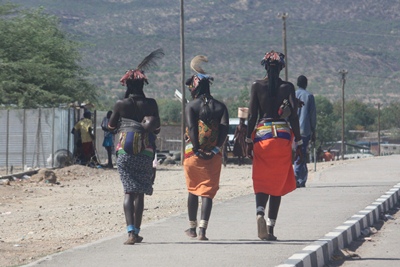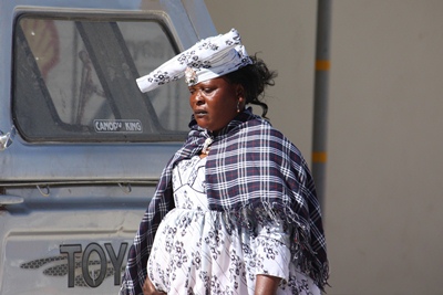 the Herero wear large Victorian dresses and so typical hats which are reminiscent of the horns of cows,